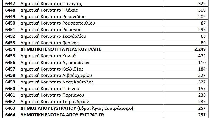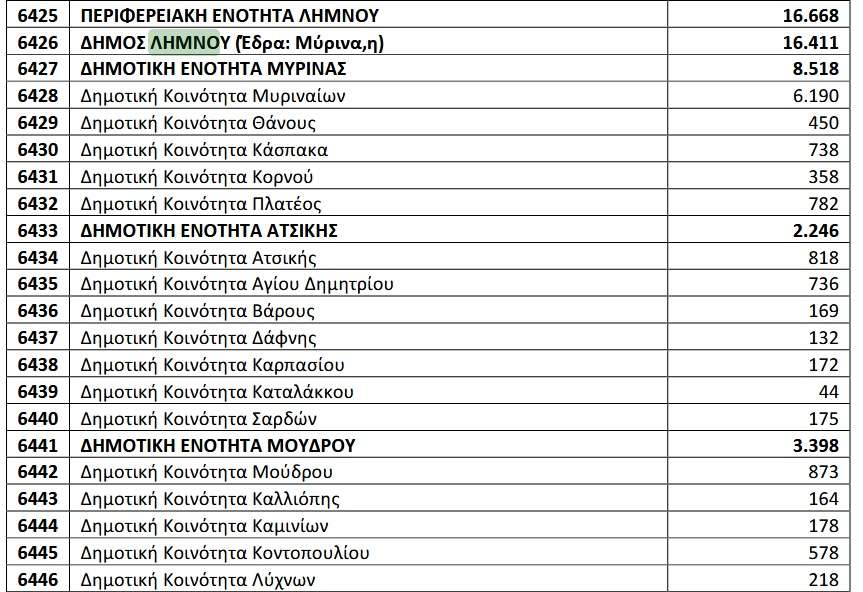 Απογραφή 2021: Οι τελικοί πίνακες ανά περιοχή στη Λήμνο