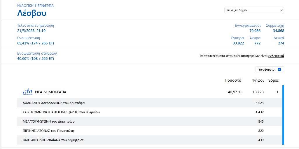 Εκλογές 2023: Δείτε τα αποτελέσματα της σταυροδοσίας στο νομό Λέσβου – Βγαίνει Βουλευτής από τη Λήμνο;