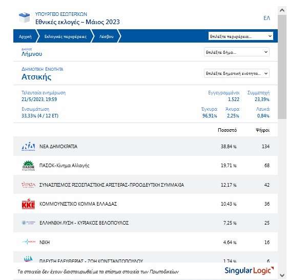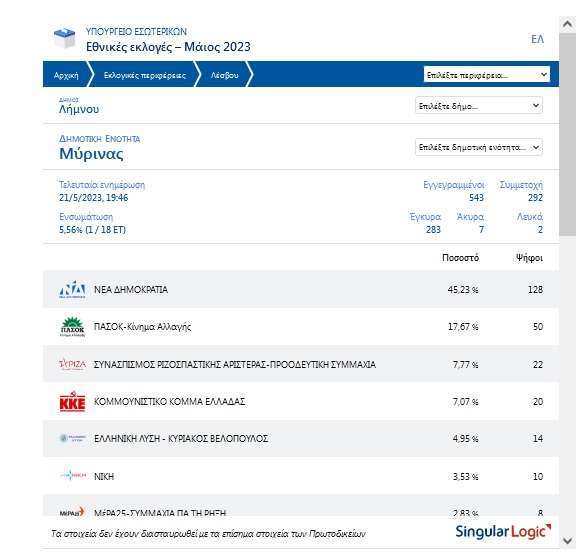 Εκλογές 2023 – Λήμνος: Τα πρώτα αποτελέσματα