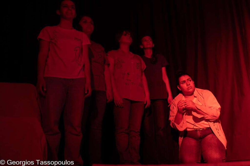 Τα μέλη της θεατρικής μας ομάδας: Χάρις Μεργιά, Αντώνης Μιχάκης, Ελένη Καλογίαννη (ΕΠΑΛ Μύρινας), Ελευθερία Λιγδαρά (ΓΕΛ Μούδρου), Γιοβάνα Μήλε, Ασπασία Χαβιά, Αδαμαντία Κονταρή.