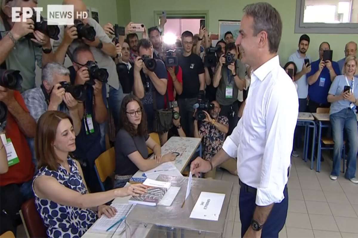Όπως και στις κάλπες της 21ης Μαΐου, έτσι και σήμερα ο Κυριάκος Μητσοτάκης ψήφισε δίνοντας τόσο την ηλεκτρονική όσο και τη συμβατική ταυτότητα.