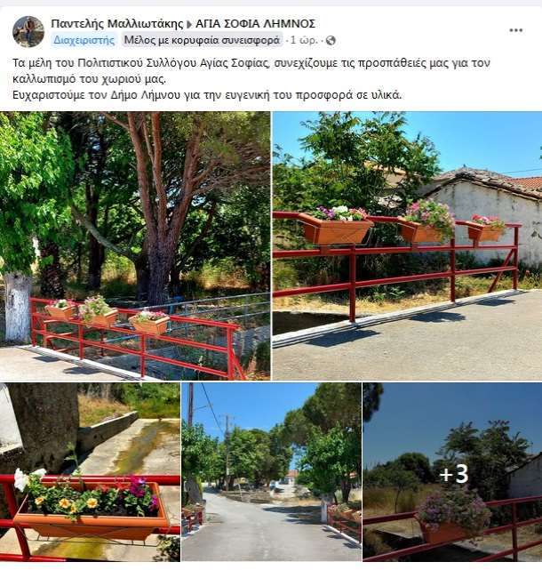 Ο Πολιτιστικός Σύλλογος Αγιασοφιάς Λήμνου συνεχίζει να εντυπωσιάζει με τις δράσεις του και τη δέσμευσή του για την τοπική κοινότητα. Μετά την επιτυχημένη πρωτοβουλία του καλλωπισμού του Δημοτικού Σχολείου του χωριού, (Δείτε ΕΔΩ το σχετικό άρθρο) η οποία αναδείχθηκε ως μια ουσιαστική βελτίωση του περιβάλλοντος και της αισθητικής του χώρου, ο Σύλλογος δείχνει ότι η δράση του δεν έχει σταματήσει εκεί.