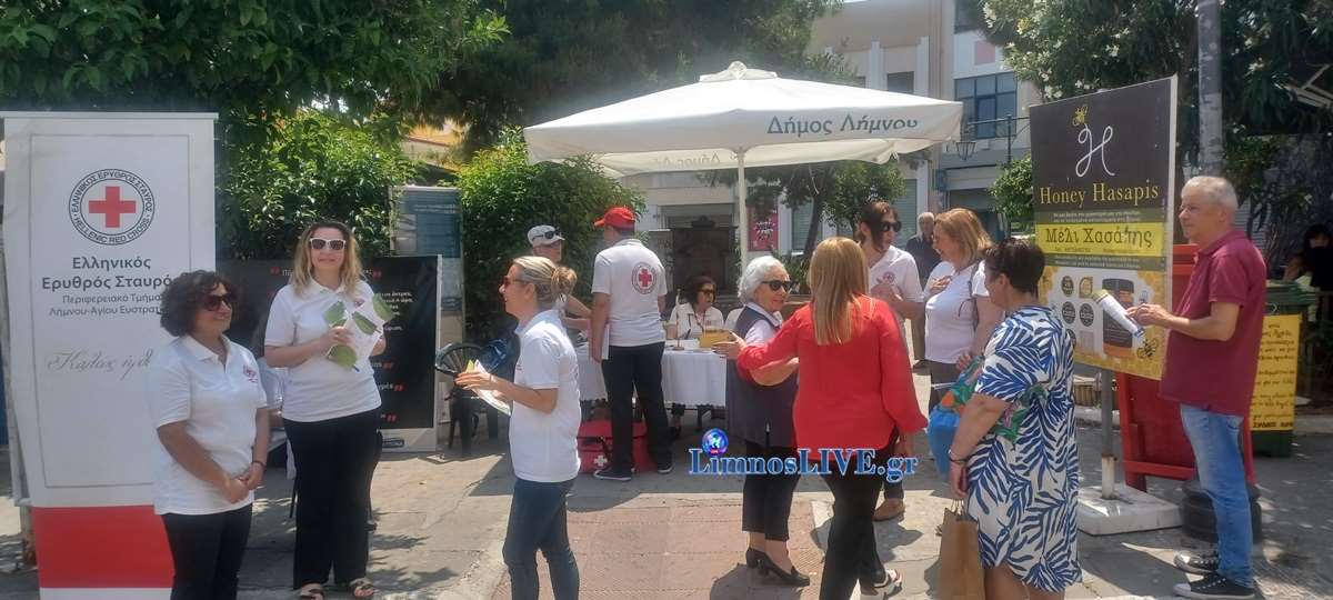 Το Περιφερειακό Τμήμα Λήμνου – Αγίου Ευστρατίου του Ελληνικού Ερυθρού Σταυρού πραγματοποίησε δράση ενημέρωσης του κοινού στην πλατεία Υψιπύλης, ανήμερα της επετείου ίδρυσης του Ελληνικού Ερυθρού Σταυρού χθες, Σάββατο.