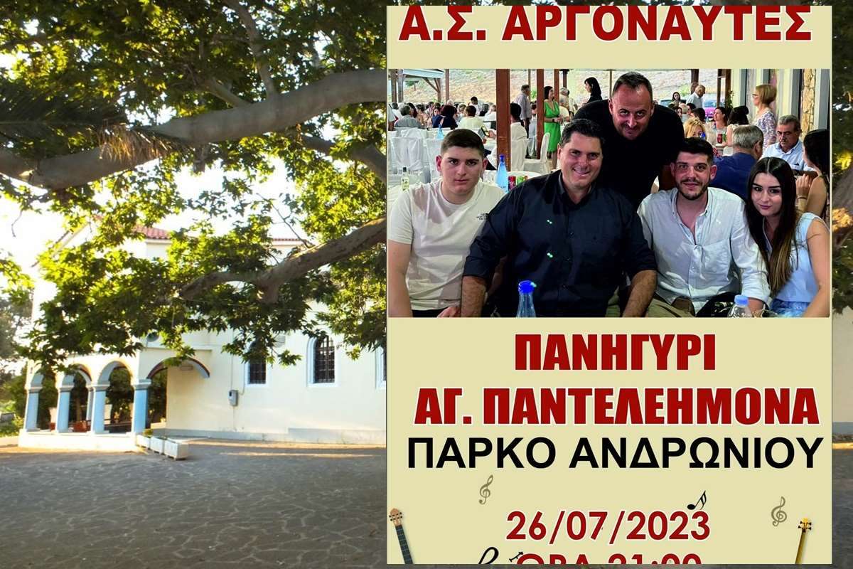 Στο πάρκο του Ανδρωνίου στις 9 το βράδυ θα πραγματοποιηθεί το πανηγύρι του Αγ. Παντελεήμονα από τον Αθλητικό σύλλογο των Αργοναυτών