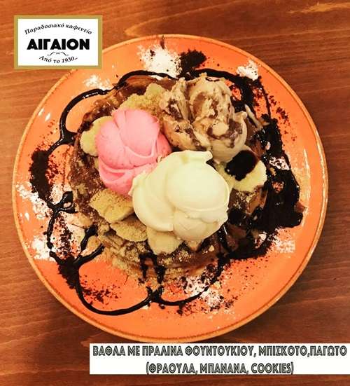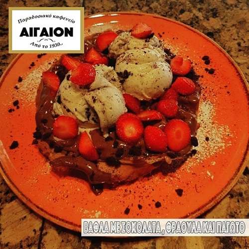 Είτε είστε λάτρεις των γλυκών απολαύσεων, είτε απλά θέλετε να δοκιμάσετε την πολυσυζητημένη βάφλα, συνοδευόμενη από μια μπάλα του γνωστού για την ποιότητά του, παγωτού Δωδώνη, δεν έχετε παρά να επισκεφθείτε το Καφέ Αιγαίον