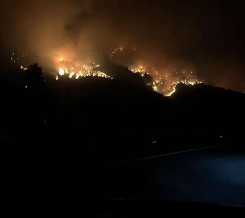 Μήνυμα του 112, εστάλη προληπτικά στις 20.10, για απομάκρυνση όσων βρίσκονται στις περιοχές Σάντα, Μέγκουλα, Πόρτα, Παλιά Περίθεια και Σινιές, λόγω της φωτιάς.