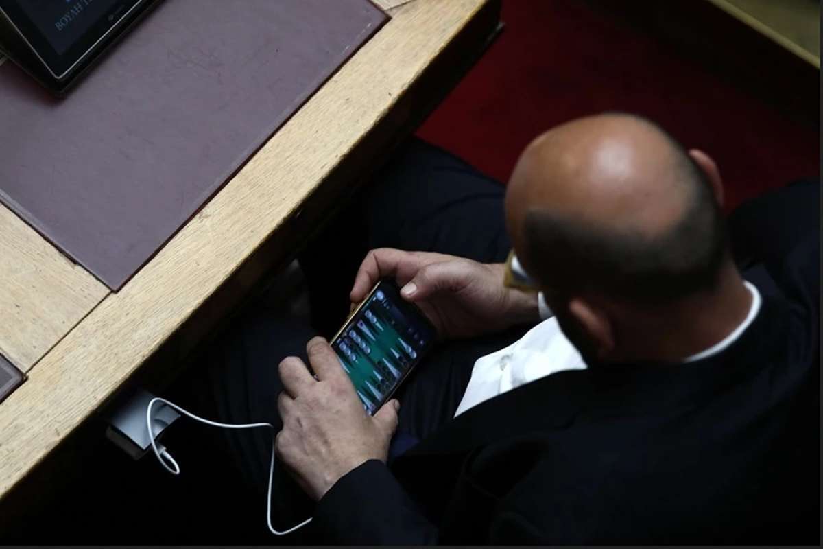 Όπως φαίνεται στη φωτογραφία από το πρακτορείο Intime, o συγκεκριμένος βουλευτής, κάθισε αναπαυτικά στα έδρανα, συνέδεσε το κινητό του με τον φορτιστή για να μην χάνει και μπαταρία και επιδόθηκε σε μερικές παρτίδες τάβλι.