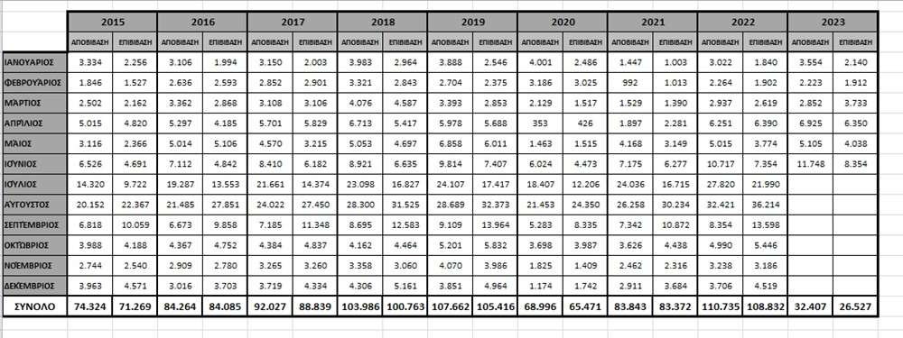 Αισιοδοξία φέρνουν οι αφίξεις του φετινού Ιουνίου στη Λήμνο, σύμφωνα με τα στοιχεία που ανακοίνωσε σήμερα το λιμεναρχείο Μύρινας.