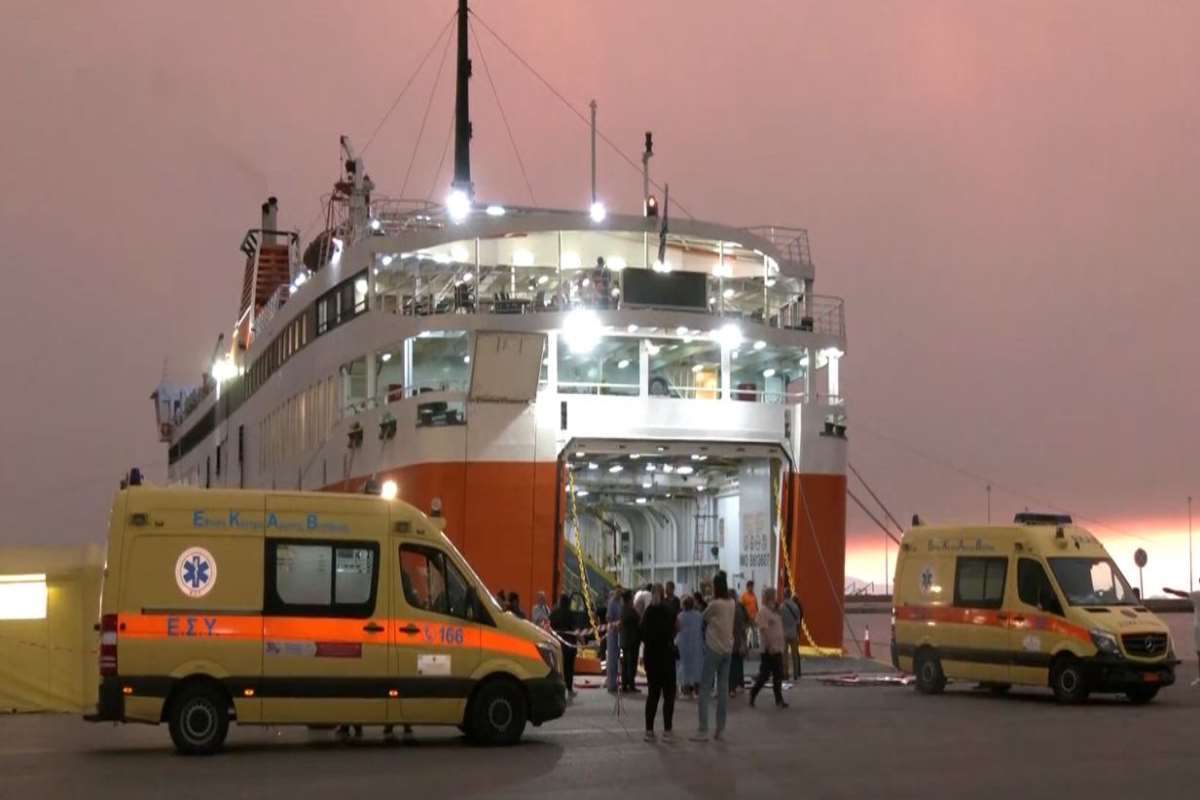 Το πλοίο αναχώρησε περίπου στις 11 το πρωί από το λιμάνι της πρωτεύουσας του νομού Εβρου, μετά από τη δραματική επιχείρηση εκκένωσης, καθώς οι φλόγες είχε περικυκλώσει το κτίριο.
