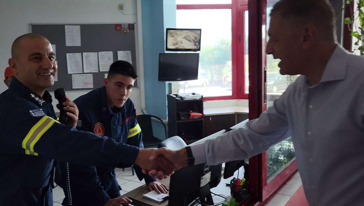Ο επικεφαλής του συνδυασμού «ΝΕΑ ΔΥΝΑΜΙΚΗ» συνοδευόμενος από υποψηφίους επισκέφτηκε το πρωί την Πυροσβεστική Υπηρεσία. Εκεί είχε την ευκαιρία να συνομιλήσει με τους «ήρωες της διπλανής πόρτας» με τις γυναίκες και τους άνδρες της Πυροσβεστικής δηλώνοντας «Η ελληνική κοινωνία σας ευχαριστεί βαθιά για τα όσα προσφέρετε σε περιπτώσεις έκτακτης ανάγκης, θέτοντας σε κίνδυνο την ίδια σας τη ζωή προς όφελος του κοινού καλού».