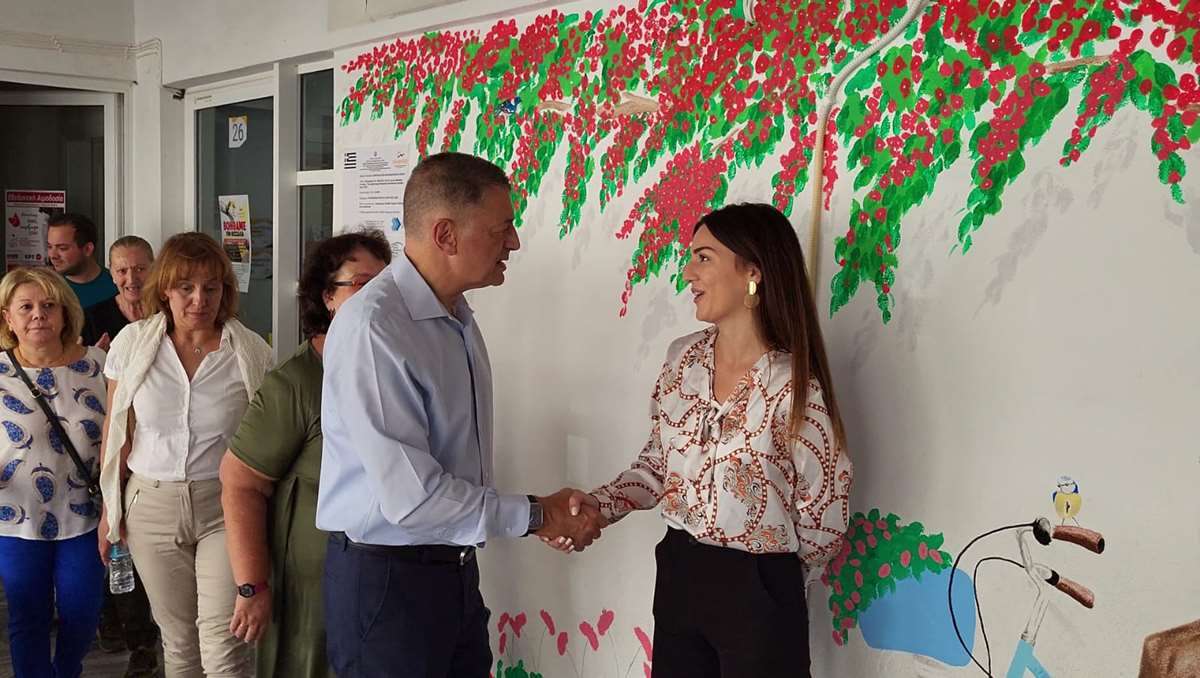 Επόμενος σταθμός, το Μικτό Κέντρο Διημέρευσης Ημερήσιας Φροντίδας για Άτομα με Αναπηρία «Η Κυψέλη». Γνώρισε το προσωπικό και συνομίλησε με τους ωφελούμενους. Η πρόεδρος του Κέντρου, επικοινώνησε ζητήματα της καθημερινότητας που τους απασχολούν και πως είναι η διαβίωση τους. «Το έργο σας είναι ειλικρινά συγκινητικό. Εμείς μπορεί να ερχόμαστε και να συνομιλούμε για ένα δεκάλεπτο της ώρας, πιστεύοντας ότι κάναμε κάτι, ενώ εσείς αγόγγυστα με το χαμόγελο στα χείλη και με όλη την καλή διάθεση προσφέρετε καθημερινά. Είστε άξιοι σεβασμού».