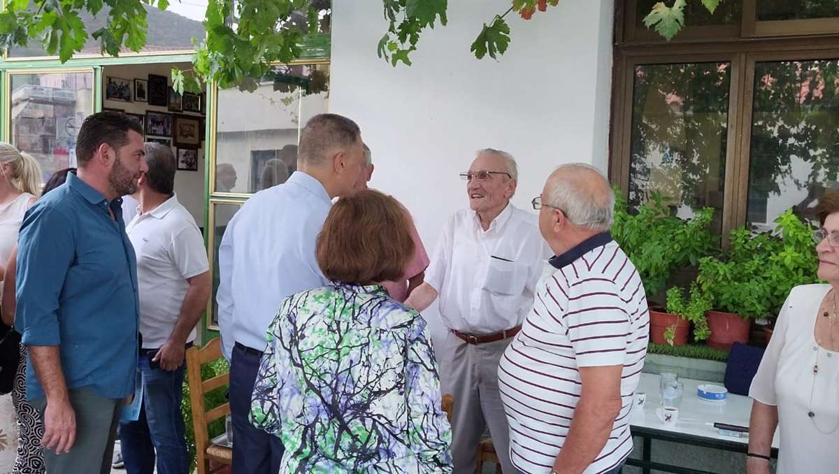 Το απόγευμα, επισκέφθηκε τον παραδοσιακό και λιθόστρωτο οικισμό της Αγίας Μαρίνας προσκυνώντας στην εκκλησία του χωριού. Στο χωριό Ταξιάρχες και σε σύντομο χαιρετισμό είπε: «Στην πολιτική μπήκα για να δώσω, κι όχι να πάρω. Αυτό έκανα σε όλη μου τη ζωή. Θα έχουμε την ευκαιρία για πέντε υπέροχα χρόνια να δημιουργήσουμε κάτι καλό». Στη Σκ. Λουτρών επισκέφθηκε το Μουσείο Προσφυγικής Μνήμης, και τέλος στα Λουτρά συνομίλησε με τους κατοίκους και άκουσε τα αιτήματα τους, αφού πρώτα γυναίκες του χωριού φίλεψαν στον συνδυασμό «ΝΕΑ ΔΥΝΑΜΙΚΗ» τοπικά εδέσματα δείγμα της θερμής υποδοχής που έλαβε.