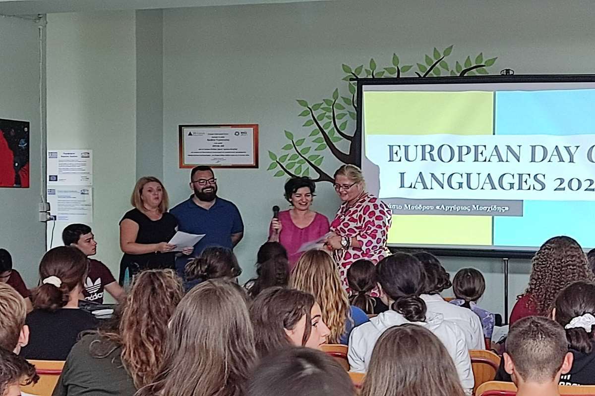 Στο Γυμνάσιο Μούδρου «Αργύριος Μοσχίδης» γιορτάσαμε σήμερα την Ευρωπαϊκή Ημέρα Γλωσσών με εκδήλωση που επιμελήθηκαν οι καθηγήτριες Ξένων Γλωσσών του σχολείου Μέρμηγκα Χρυσούλα, Τσάκου Ευαγγελία και Πάντσιου Λίνα με τη βοήθεια όλων των συναδέλφων. Στόχος της διοργάνωσης ήταν να αναδείξει τις γλώσσες που μιλιούνται στη σχολική μας κοινότητα και ταυτόχρονα να ενθαρρύνει την πολυγλωσσία και την εκμάθηση ξένων γλωσσών.