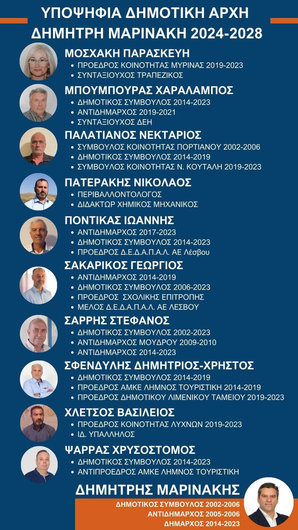 “Σας παρουσιάζουμε ενδεικτικά την ομάδα του συνδυασμού «Η ΛΗΜΝΟΣ ΜΑΣ», η οποία πρόκειται να εκλεγεί, αν μας τιμήσετε ξανά με την ψήφο σας την ερχόμενη Κυριακή.