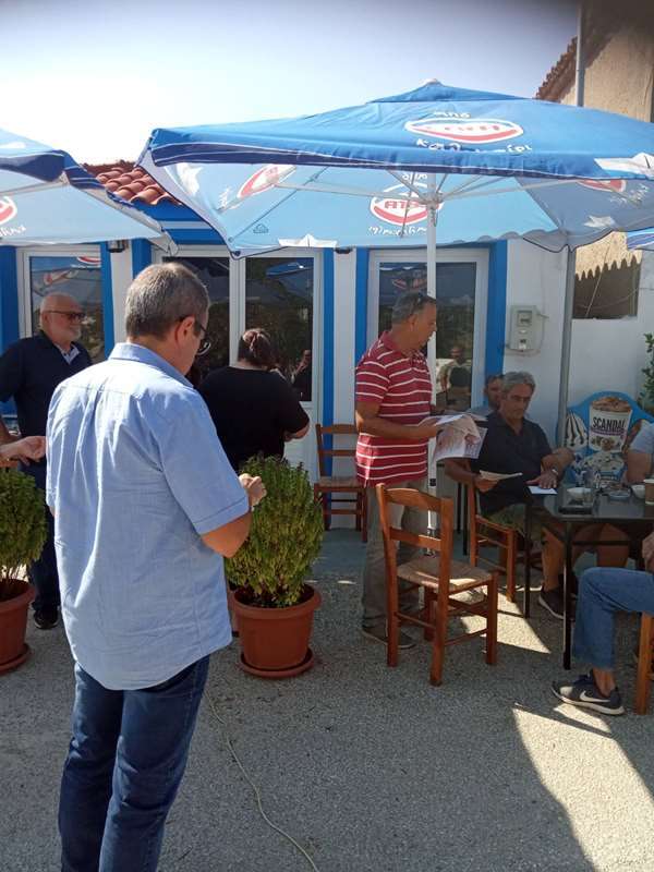 Οι υποψήφιοι της Λαϊκής Συσπείρωσης ενημέρωσαν τους κατοίκους του χωριού για το πρόγραμμα και τις θέσεις της Λαϊκής Συσπείρωσης και συζήτησαν μαζί τους, πάντα σε θετικό κλίμα, για ζητήματα, όπως είναι το νερό και η αξιοποίηση των πηγών, οι επισκευές δρόμων, η καθαριότητα, οι Ανανεώσιμες Πηγές Ενέργειας, αλλά και προβλήματα με την ασφαλή και δωρεάν μετακίνηση των μαθητών στα σχολεία, που παραμένουν ένα μήνα σχεδόν από την έναρξη των μαθημάτων.