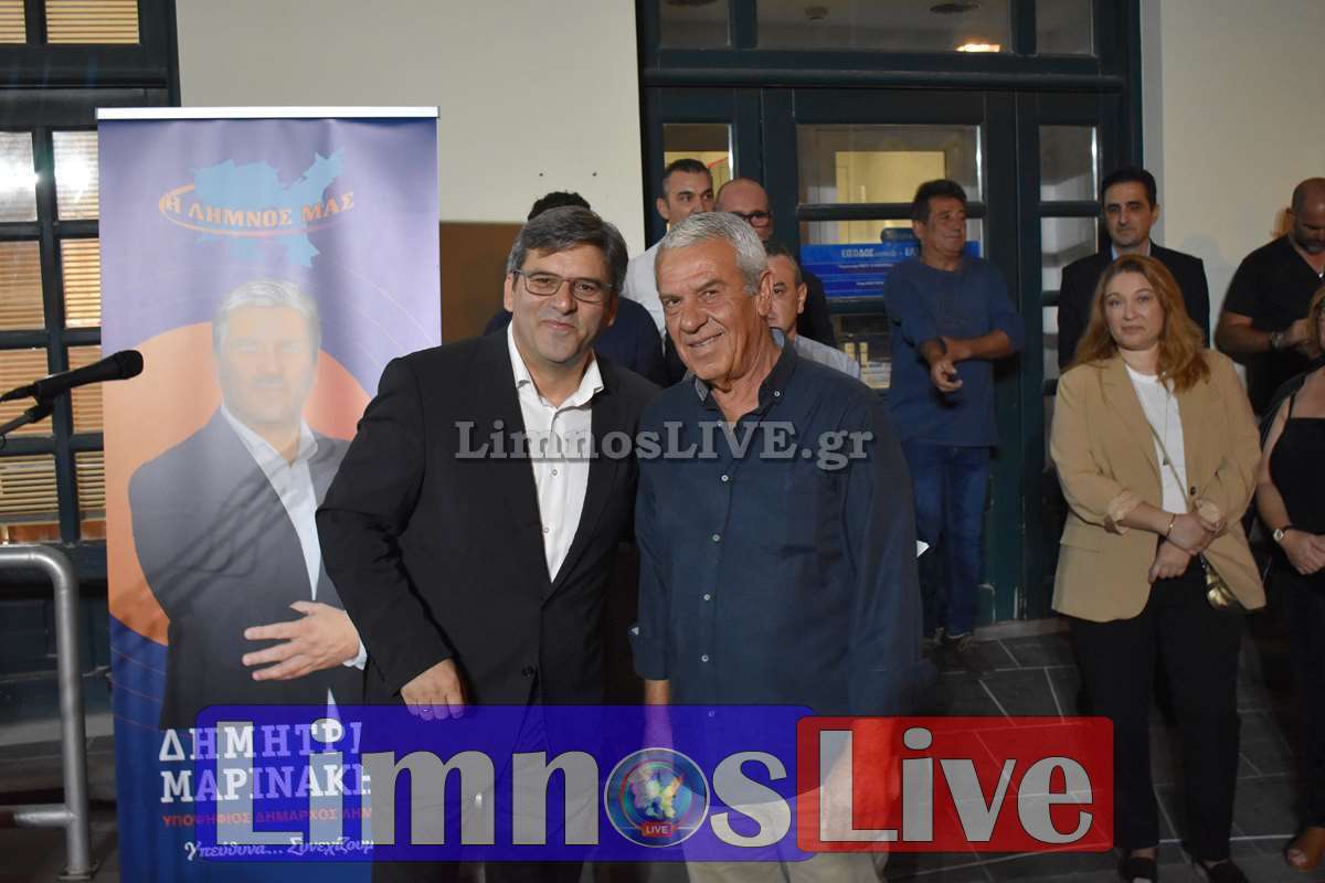 Χθες Σάββατο, πραγματοποιήθηκαν με πολύ κόσμο στην καρδιά της Μύρινας, στην κεντρική πλατεία Υψιπύλης, τα εγκαίνια του δεύτερου εκλογικού κέντρου του συνδυασμού “Η Λήμνος μας”, υπό την ηγεσία του Δημήτρη Μαρινάκη.
