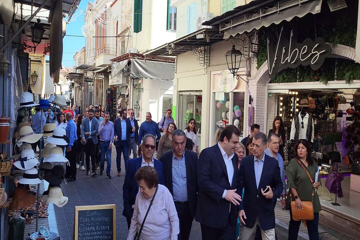 Ο Υποψήφιος Περιφερειάρχης Βορείου Αιγαίου, Αλκιβιάδης Στεφανής, συνοδευόμενος από τον Υπουργό Παιδείας, Θρησκευμάτων και Αθλητισμού, κ. Κυριάκο Πιερρακάκη, τον Βουλευτή ΝΔ  Λέσβου, κ. Χαράλαμπο Αθανασίου, στελέχη της ΔΕΕΠ, ΟΝΝΕΔ, ΔΑΠ και υποψηφίους του συνδυασμού «ΝΕΑ ΔΥΝΑΜΙΚΗ» περιόδευσαν στην αγορά της Μυτιλήνης. Είχαν την ευκαιρία να προσκυνήσουν στη Μητρόπολη Μυτιλήνης και να συζητήσουν με ιδιοκτήτες καταστημάτων, πελάτες και απλούς πολίτες.