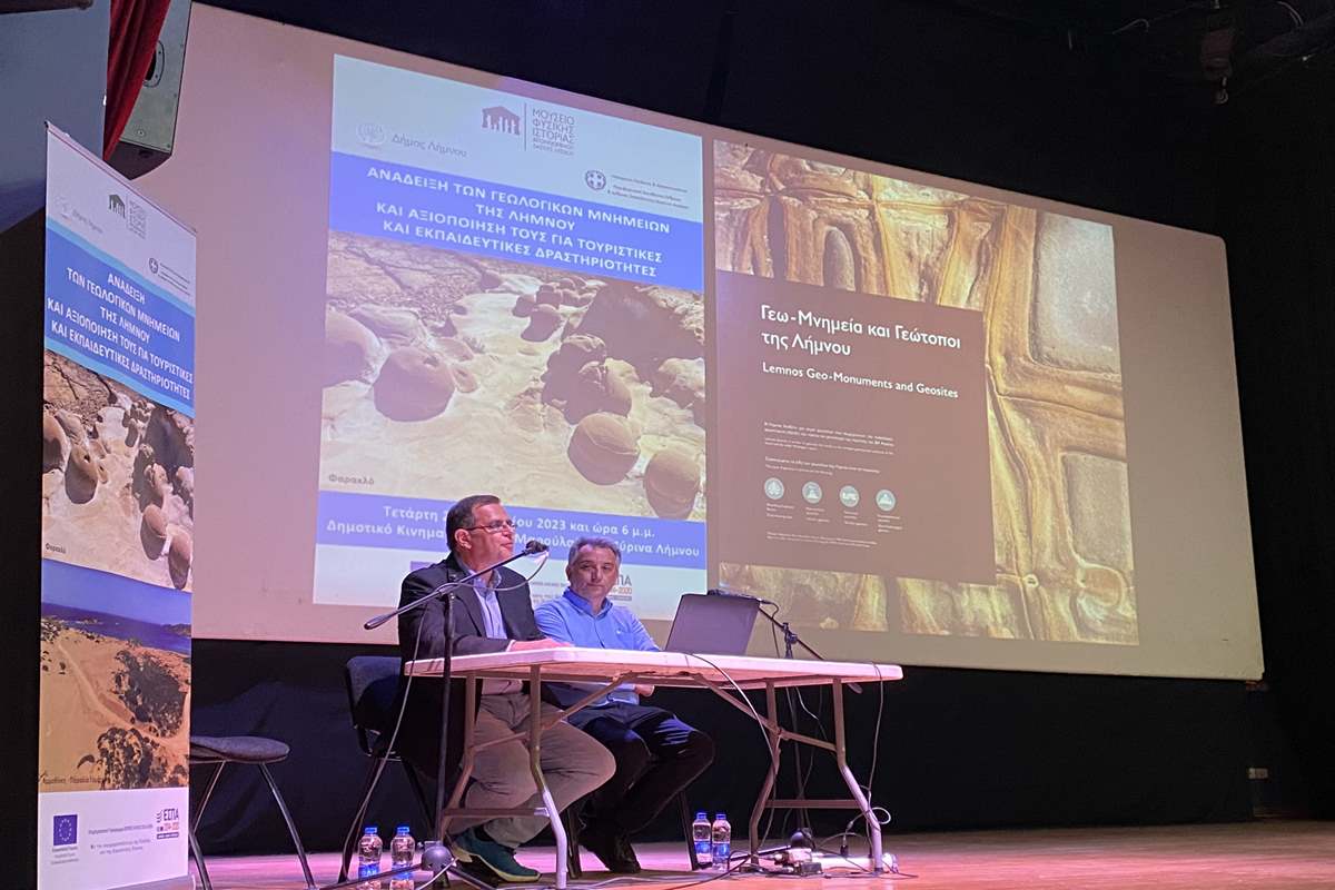 Με μεγάλη επιτυχία και με μεγάλη συμμετοχή της τοπικής κοινωνίας της Λήμνου πραγματοποιήθηκε η εκδήλωση με θέμα ‘’Ανάδειξη των γεωλογικών μνημείων της Λήμνου και αξιοποίησή τους για τουριστικές και εκπαιδευτικές δραστηριότητες’’ που πραγματοποιήθηκε στη Μύρινα την Τετάρτη 22 Νοεμβρίου 2023 για την παρουσίαση των αποτελεσμάτων της Πράξης «Δημιουργία – λειτουργία ψηφιακών εφαρμογών προβολής των γεω-μνημείων Λήμνου».
