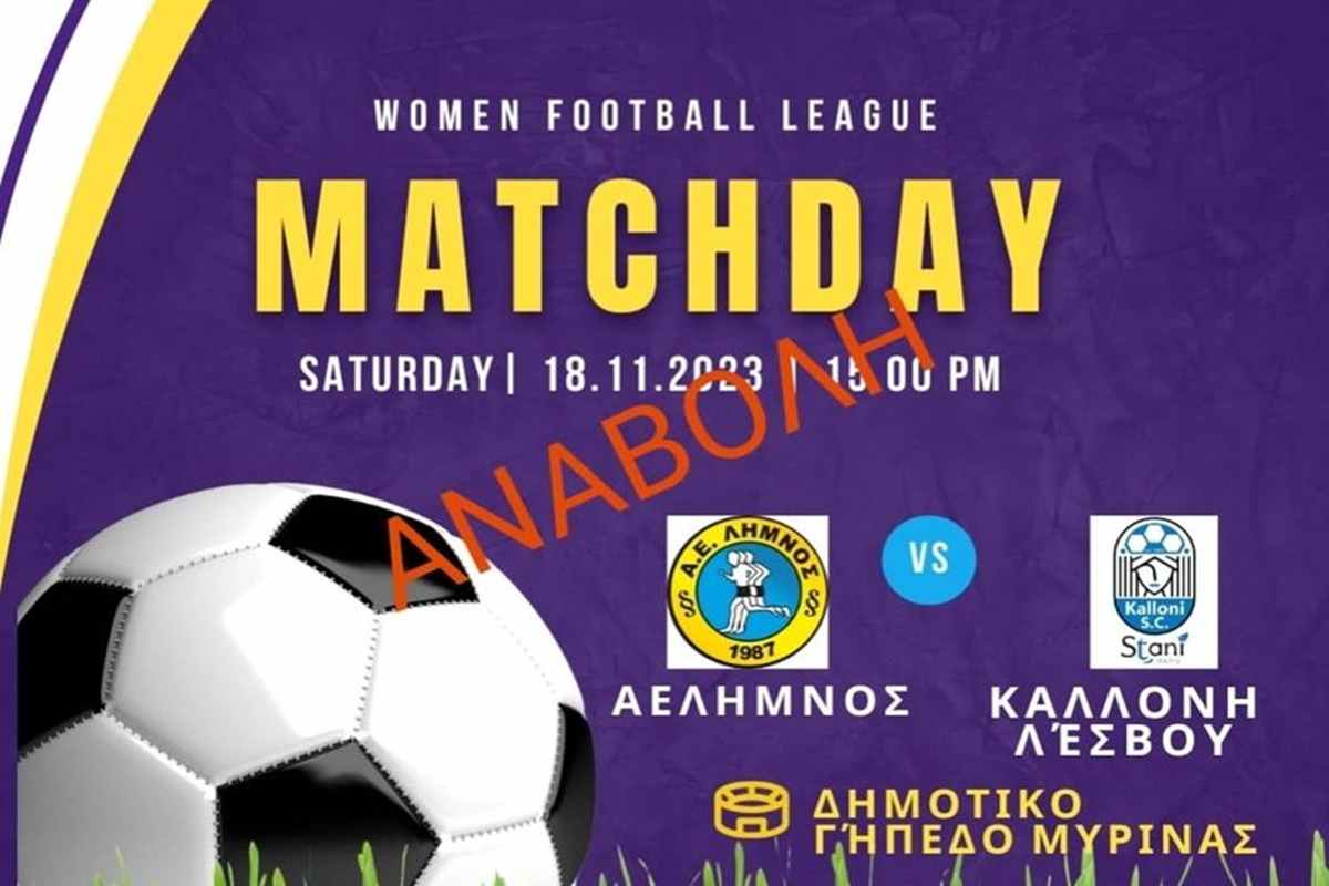 Λόγω των δυσμενών καιρικών συνθηκών αναβλήθηκε ο ποδοσφαιρικός αγώνας γυναικών ΑΕ Λήμνος – Καλλονή Λέσβου
