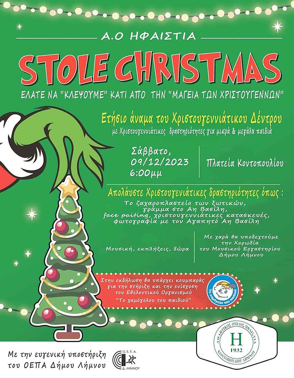 Με μεγάλη χαρά ο Αθλητικός Όμιλος Ηφαιστία σας προσκαλεί σε μια ξεχωριστή Χριστουγεννιάτικη γιορτή που θα πραγματοποιηθεί το Σαββατο 9 Δεκεμβρίου στις 18.00,στην πλατεία Κοντοπουλίου!
