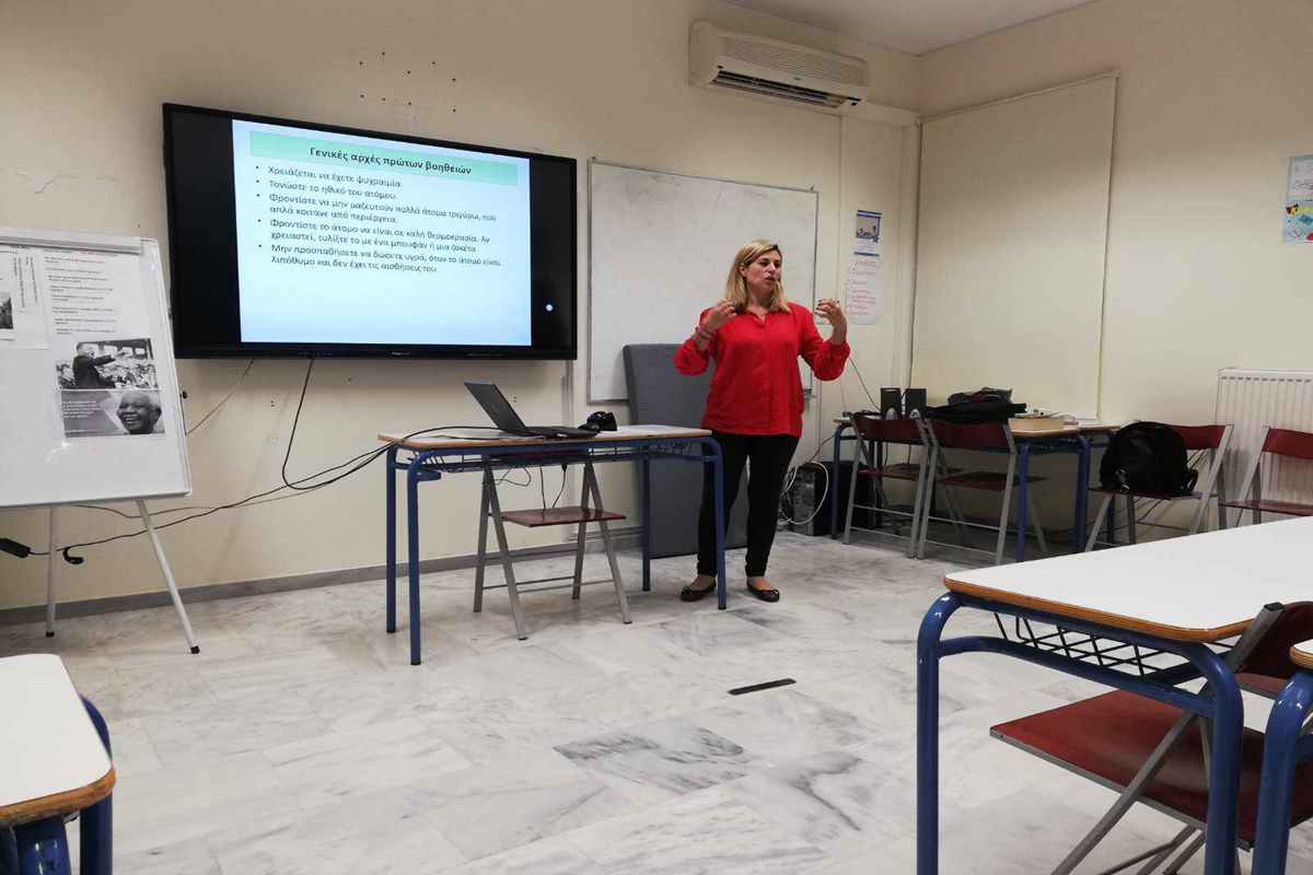 Η σχολική νοσηλέυτρια κ. Καραμπέτσου έχει βιώσει μέσα από τη δουλειά της την τεράστια σημασία αυτών των λέξεων. Οι γνώσεις και οι δεξιότητες της σωστής παροχής πρώτων βοηθειών από μάρτυρες ενός περιστατικού είναι ζωτικής σημασίας. Για το λόγο αυτό οι εκπαιδευτικοί θα πρέπει να έχουν αποκτήσει τη δεξιότητα της σωστής χρήσης παροχής πρώτων βοηθειών. Τόσο η δική μας ασφάλεια όσο και των συνανθρώπων μας πρέπει να είναι προτεραιότητα. Έχει παρατηρηθεί πως τα περισσότερα ατυχήματα συμβαίνουν είτε στο σπίτι είτε στο σχολείο και για το λόγο αυτό είναι απαραίτητο να γνωρίζουμε όλοι ανεξαρτήτως τον σωστό τρόπο για να αντιμετωπίσουμε δύσκολες καταστάσεις. Πώς θα γίνει αυτό; Με την εκπαίδευση Α’ βοηθειών στα σχολεία.