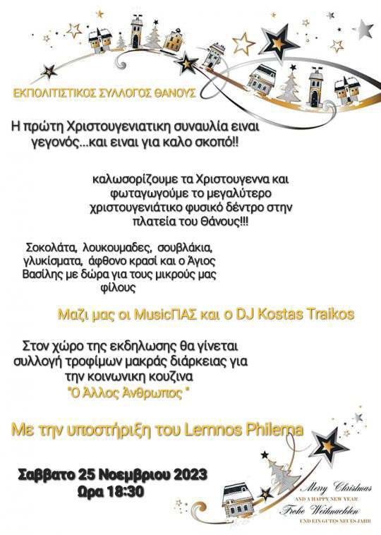 Η έναρξη της Χριστουγεννιάτικης περιόδου ξεκινάει από το Θάνος το Σάββατο 25 Νοεμβρίου στις 18:30 να είσαι εκεί!