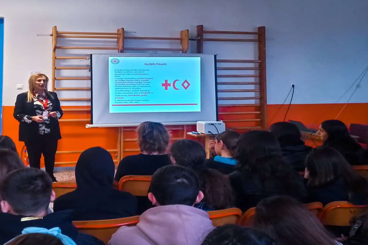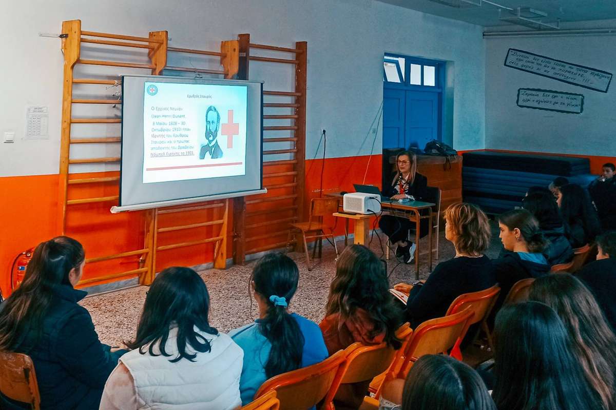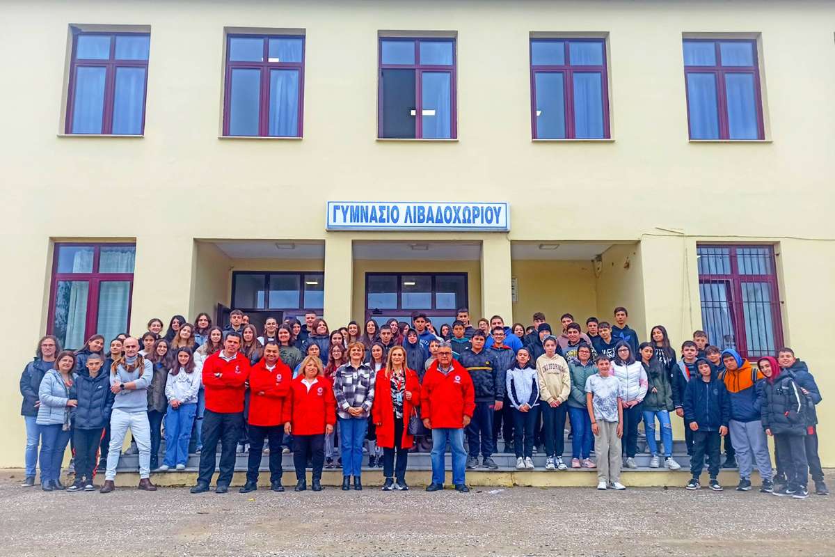 Την Πέμπτη, 7 Δεκεμβρίου 2023, οι μαθητές και οι μαθήτριες του Γυμνασίου Λιβαδοχωρίου παρακολούθησαν ένα διαφορετικό μάθημα στο σχολείο τους. Μία ενδιαφέρουσα παρουσίαση για τον Ερυθρό Σταυρό και τις δράσεις του, τα εκπαιδευτικά προγράμματα που υλοποιεί, για τον εθελοντισμό και τις επιλογές που έχουν οι νέοι σήμερα να συμβάλουν προσωπικά στην επιτυχία των στόχων του σε εθνικό αλλά και τοπικό επίπεδο.