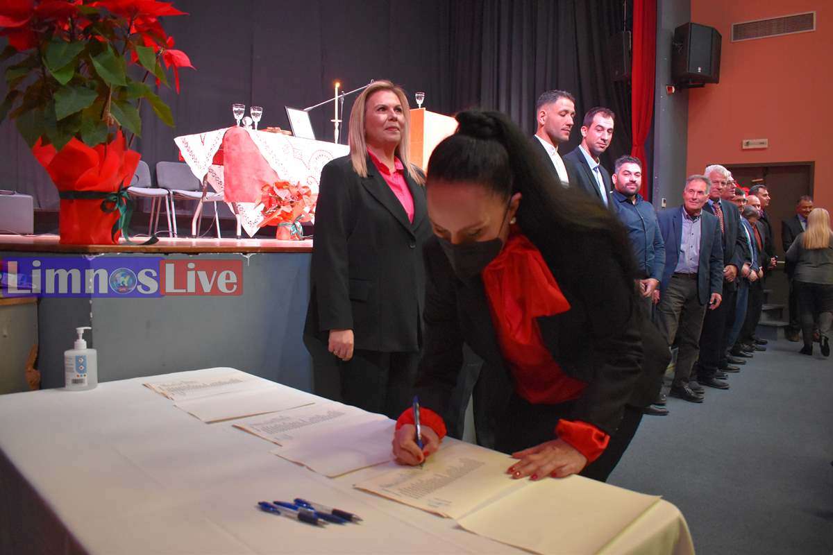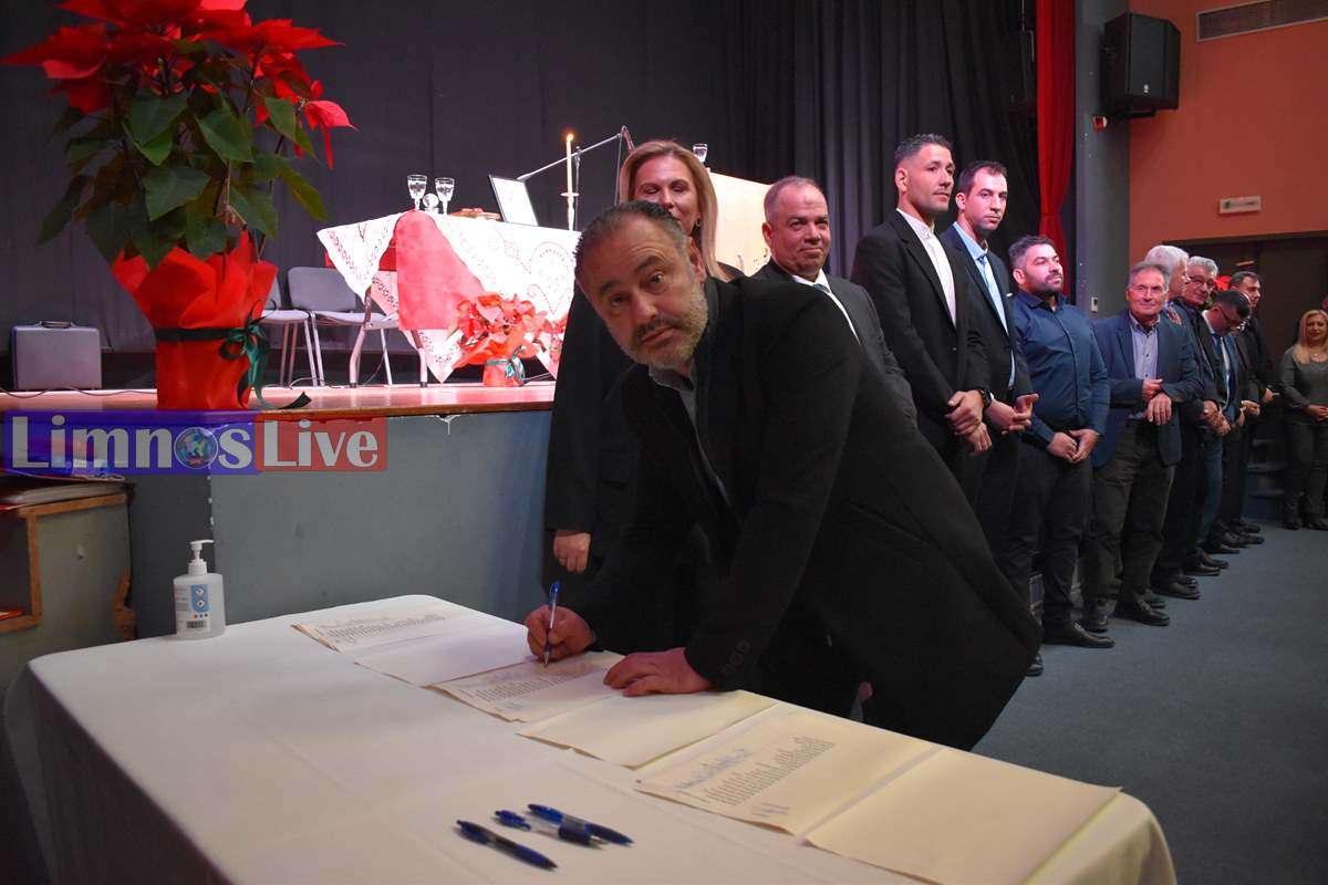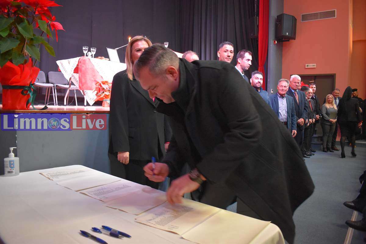 Στη συνέχεια, με πρώτη την νέα Δήμαρχο Λήμνου, οι εκλεγέντες υπέγραψαν το Πρωτόκολλο ανάληψης της θητείας τους. Αρχικά οι Δημοτικοί Σύμβουλοι Λήμνου, κατά σειρά κατάταξης των δημοτικών παρατάξεων, με τον νυν δήμαρχο Λήμνου κ. Μαρινάκη να δίνει το παρών χαμογελαστός και ευδιάθετος στην τελετή.