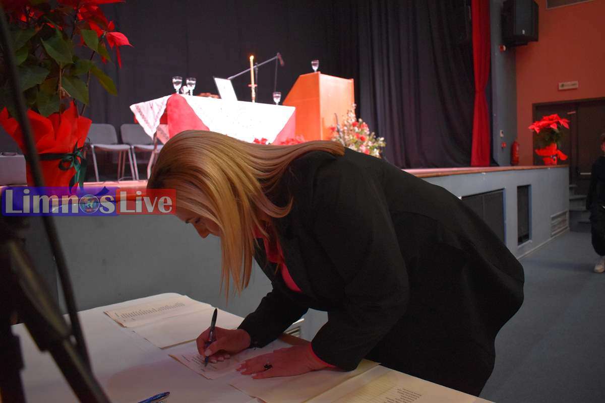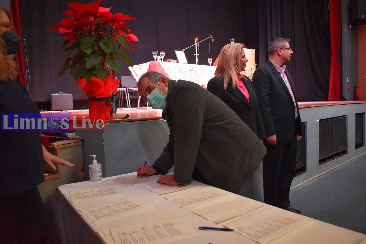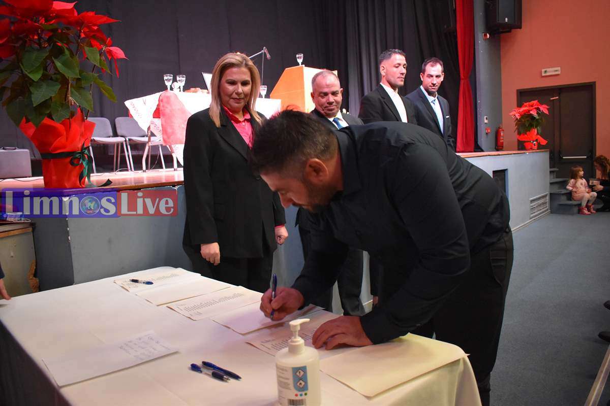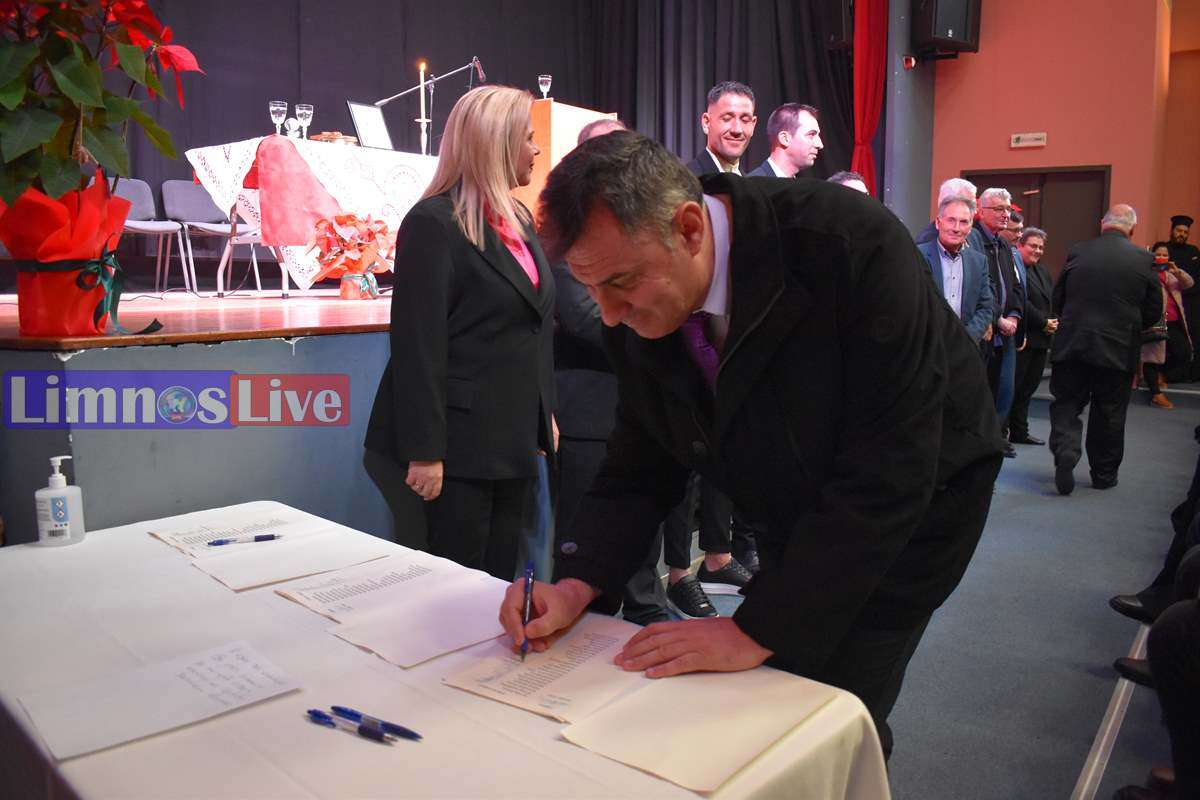 Στη συνέχεια, με πρώτη την νέα Δήμαρχο Λήμνου, οι εκλεγέντες υπέγραψαν το Πρωτόκολλο ανάληψης της θητείας τους. Αρχικά οι Δημοτικοί Σύμβουλοι Λήμνου, κατά σειρά κατάταξης των δημοτικών παρατάξεων, με τον νυν δήμαρχο Λήμνου κ. Μαρινάκη να δίνει το παρών χαμογελαστός και ευδιάθετος στην τελετή.