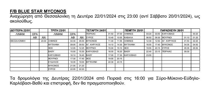 Τα δρομολόγια της Δευτέρας 22/1 από Πειραιά και επιστροφή ΔΕΝ θα πραγματοποιηθούν