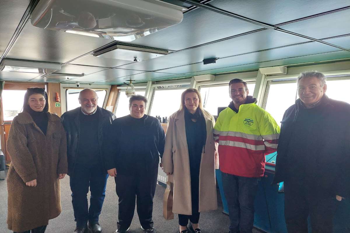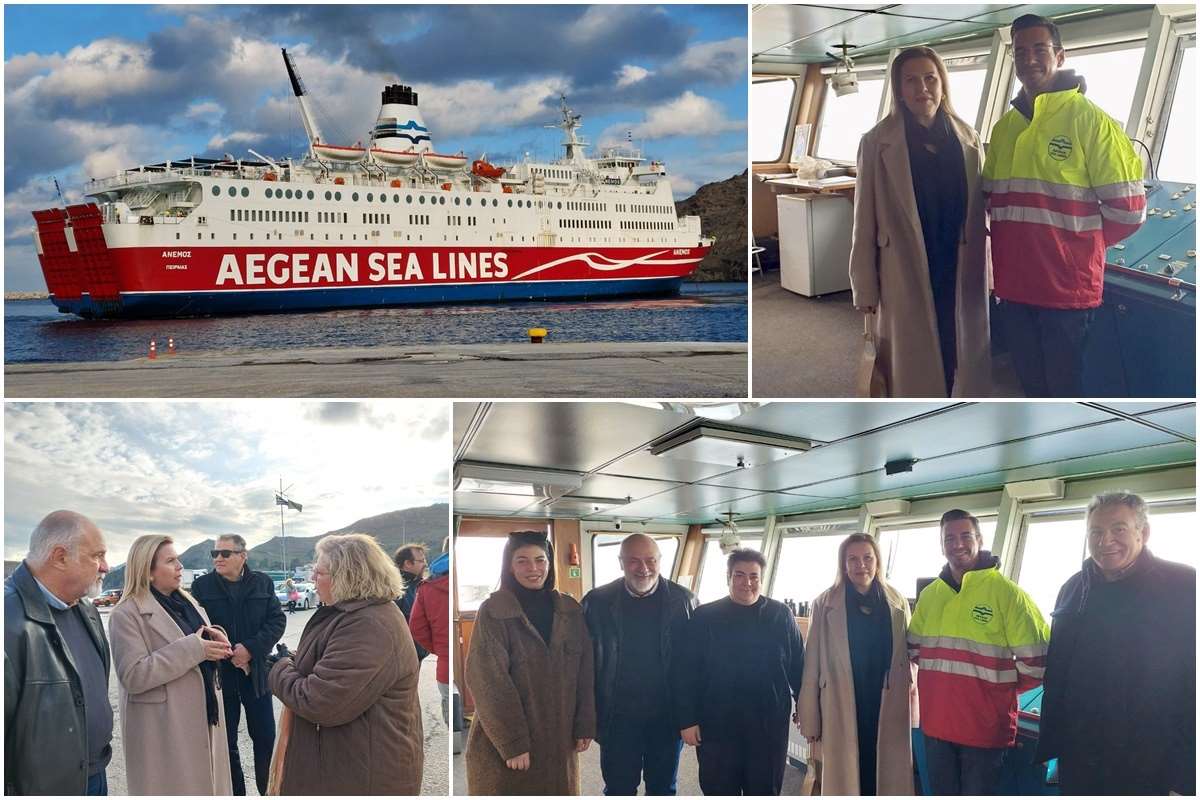 Η Δήμαρχος Λήμνου κ. Ελεονώρα Γεώργα, συνοδευόμενη από τους Αντιδημάρχους κ. Ιωάννα Διαματάρη, κ. Βαγγέλη Χασάπη και κ. Δημήτρη Μπουλώτη υποδέχθηκαν σήμερα, Παρασκευή 12 Ιανουαρίου το Ε/Γ – Ο/Γ πλοίο «Άνεμος», στο πρώτο του δρομολόγιο προς το νησί της Λήμνου.