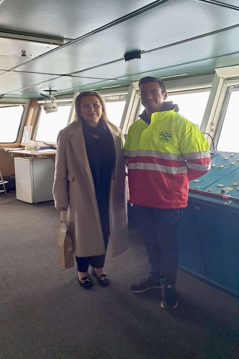 Η Δήμαρχος και οι Αντιδήμαρχοι συνομίλησαν με την εκπρόσωπο της εταιρείας κ. Έμμυ Ποθητού και με μέλη του πληρώματος ενώ είχαν ιδιαίτερη συνάντηση και με τον πλοίαρχο κ. Εμμανουήλ Τρασάνη. Η Δήμαρχος προσέφερε μία εικόνα της Παναγίας Κακαβιώτισσας για το πλοίο. Επίσης, προσφέρθηκε ένα τοπικό κρασί στον πλοίαρχο, ενώ με χορηγία του Αγροτικού Συνεταιρισμού «Η Ένωση», προσφέρθηκε στα μέλη του πληρώματος και ένας ασκός κρασί Λημνιό.