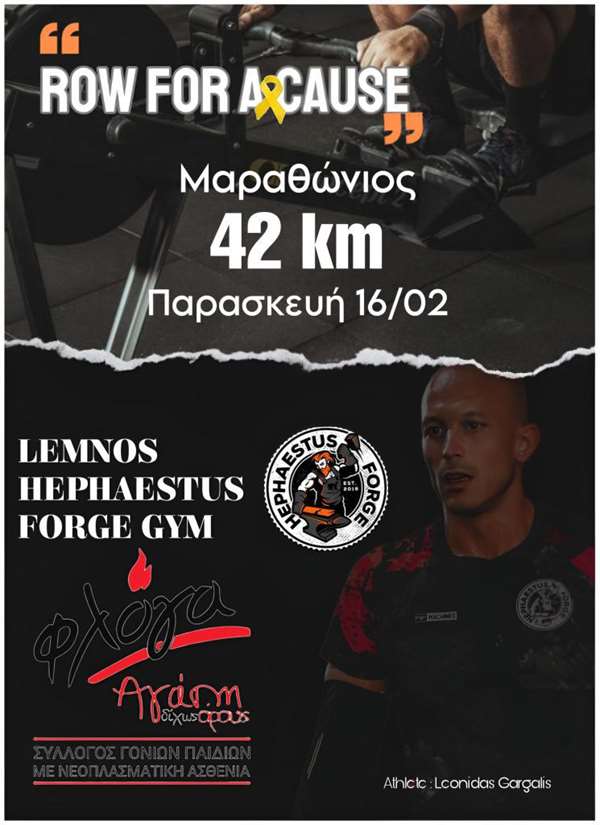 Στις 16 Φεβρουαρίου, μια ομάδα ανθρώπων θα ενώσει τις δυνάμεις της σε έναν μαραθώνιο 42 χιλιομέτρων σε κωπηλατικά εργόμετρα, με σκοπό να συγκεντρώσει χρήματα για το Ίδρυμα Φλόγα. Η πρωτοβουλία αυτή, που ανήκει στον Λεωνίδα Γαργάλη, δήλωσε στο Limnoslive: “Η πάλη κατά του παιδικού καρκίνου είναι μια προτεραιότητα και κάθε προσπάθεια μετράει