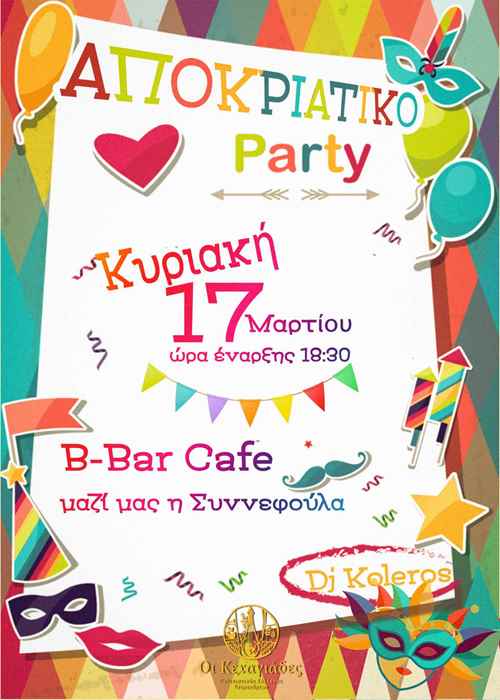 Την Κυριακή με ένα μοναδικό αποκριάτικο party στις 18:30 στο B-BAR CAFE