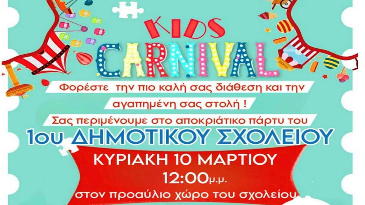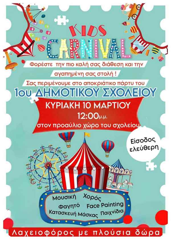 Οι Απόκριες έφτασαν και ο Σύλλογος Γονέων και Κηδεμόνων του 1ου Δημοτικού Σχολείου Μύρινας διοργανώνει αποκριάτικο πάρτυ την Κυριακή 10 Μαρτίου στις 12.00 μ.μ. στον προαύλιο χώρο του σχολείου!