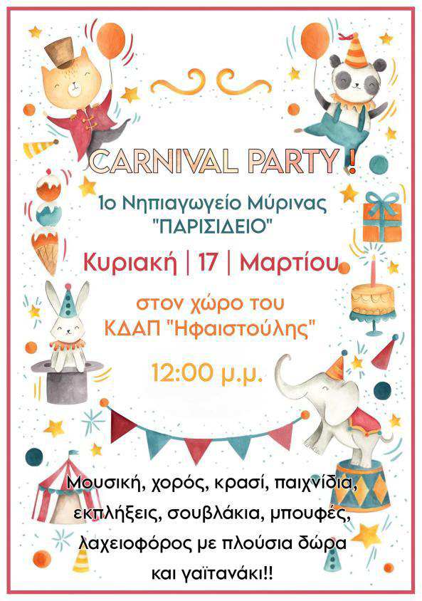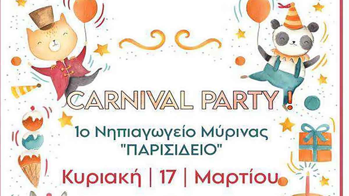 Την Κυριακή 17 Μαρτίου ξεκινάει το μεγάλο Carnival Party του 1ου Νηπιαγωγείο Μύρινας!