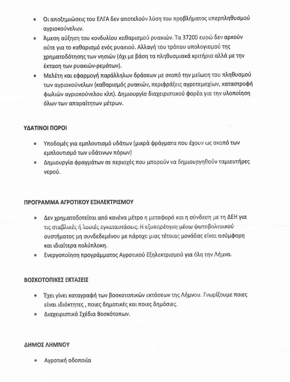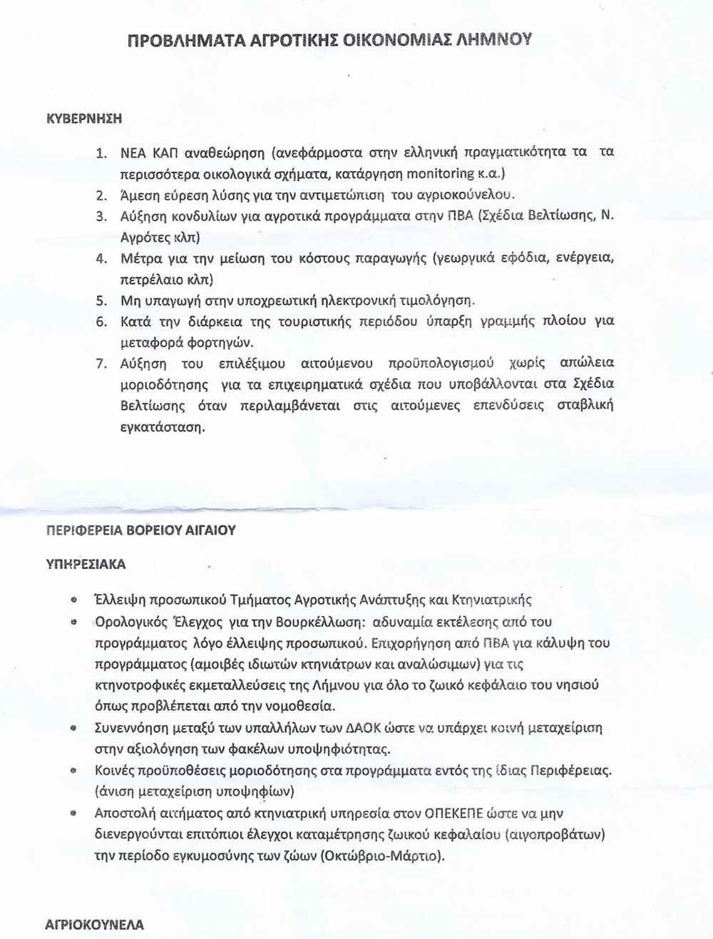 Το Υπόμνημα της Συντονιστικής Επιτροπής Αγώνας των Αγροτών Λήμνου