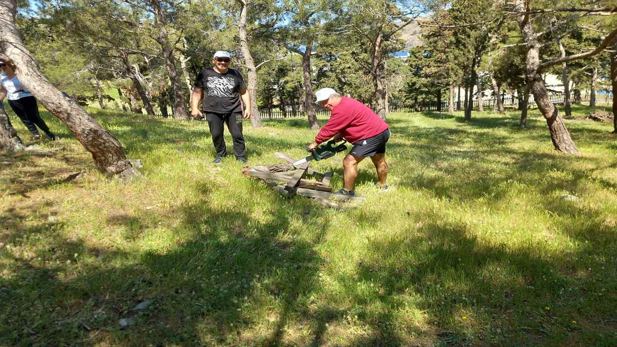 καθαρίστηκε από σκουπίδια το άλσος και ο δρόμος στο οινοποιείο, απομακρύνθηκαν σπασμένα κλαδιά δέντρων, σαθρά ξύλα από παγκάκια και κούνιες.