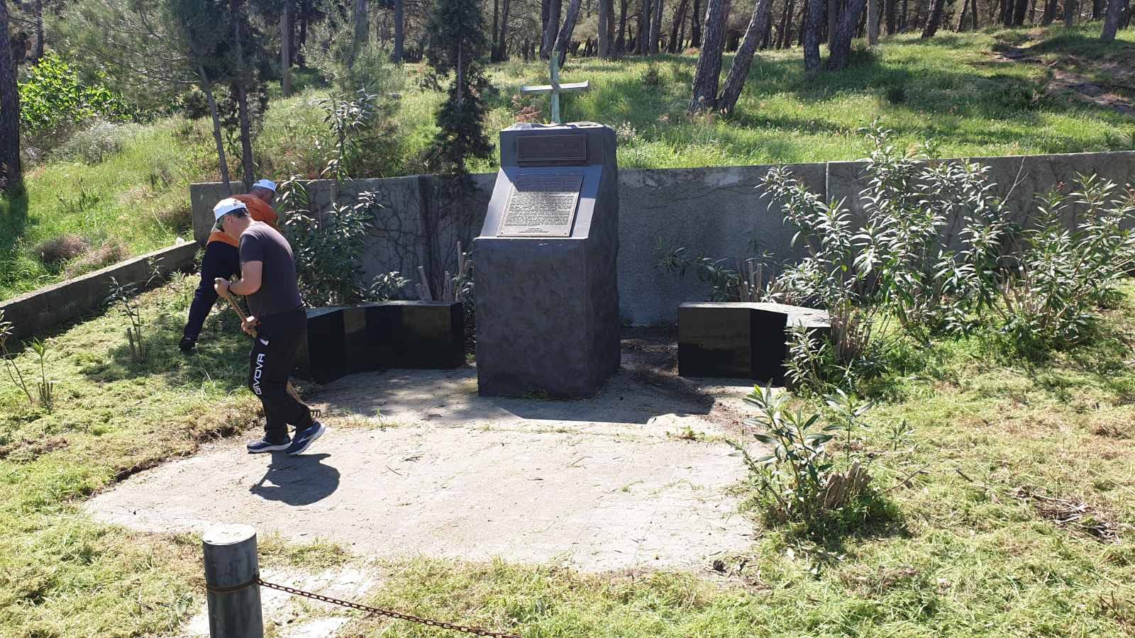 καθαρίστηκε επίσης και το μνημείο του κου Κώστα Τραταρού, στην είσοδο του άλσους.