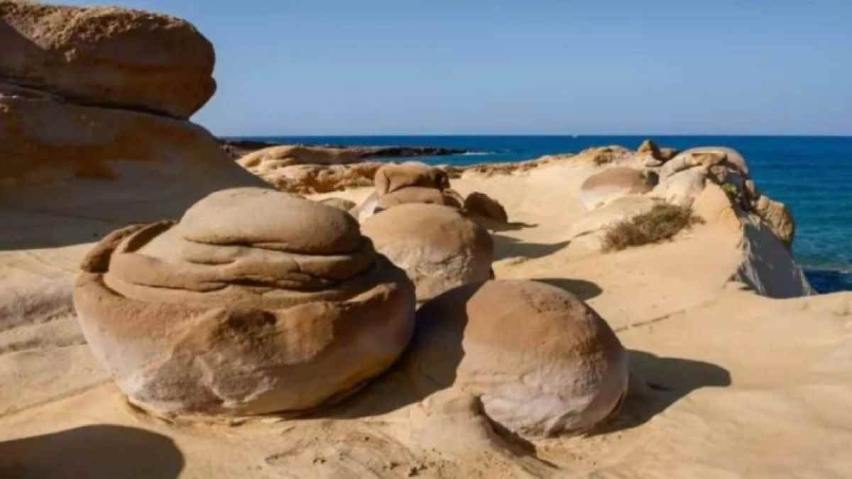 Είναι αδιαμφισβήτητα ένα άκρως εντυπωσιακό γεωλογικό μνημείο το οποίο περιλαμβάνει αυτούς τους παράξενους σχηματισμούς. Οι ντόπιοι αποκαλούν αυτά τα γλυπτά «φραγκοκέφαλα», λόγω της σφαιροειδούς μορφής τους, σε όλες τις πιθανές αποχρώσεις του κίτρινου. Θα τα δεις σχεδόν να ακουμπούν τη θάλασσα αποτελώντας ένα πραγματικό στολίδι στο νησί των αντιθέσεων.