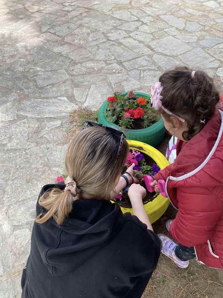 Με χρώματα και αρώματα των λουλουδιών, η αυλή του 1ου Νηπιαγωγείου Μύρινας μεταμορφώθηκε σε έναν χώρο ΦΟΒΕΡΟ!