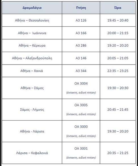 Σάμος – Λήμνος OA 3005 (έκτακτη, ειδική πτήση) 20:45 – 21:45 δείτε τον πίνακα
