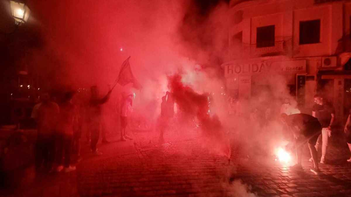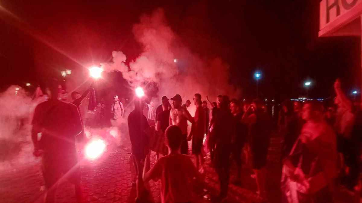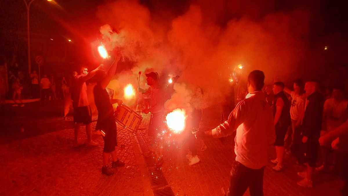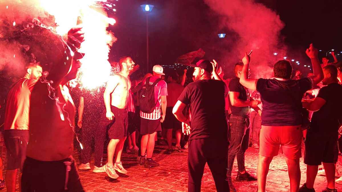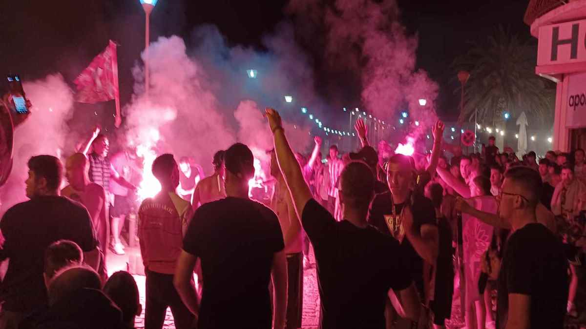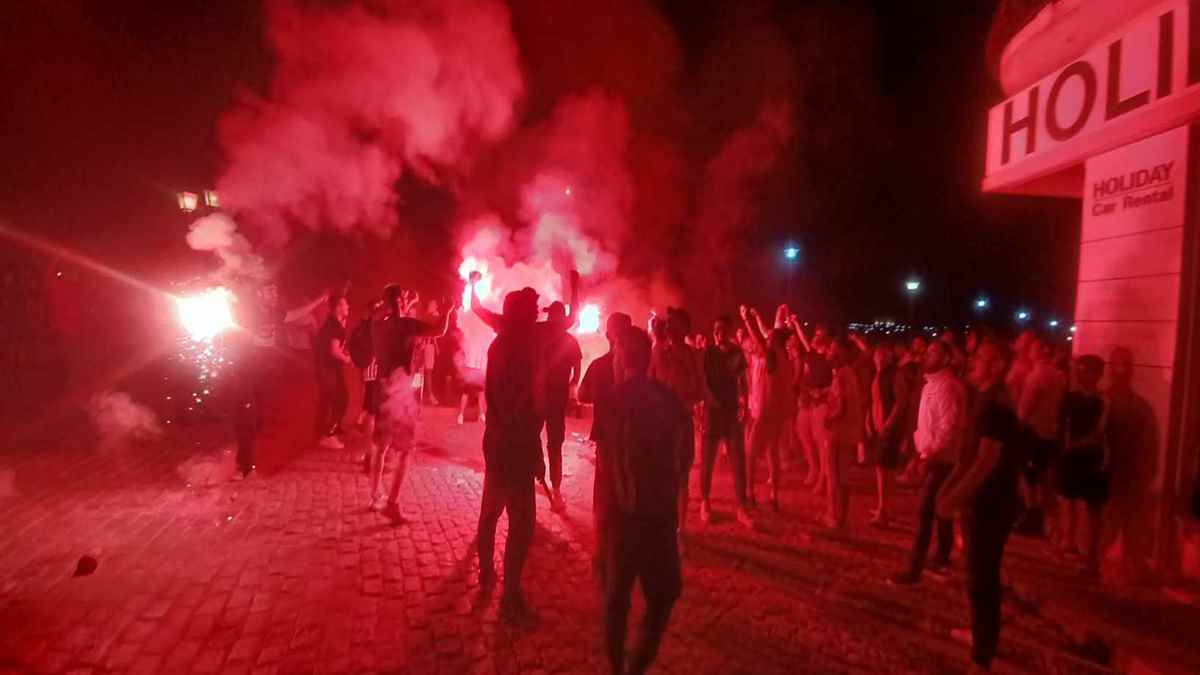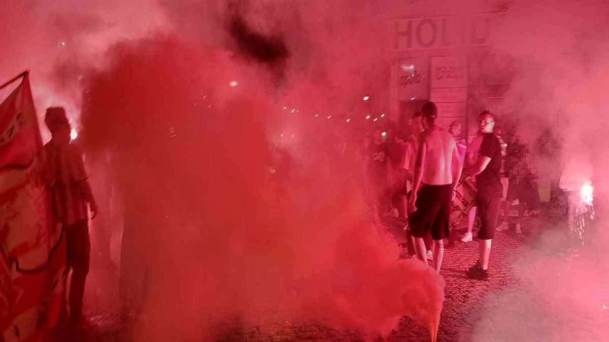 Μόλις ακούστηκε το τελευταίο σφύριγμα του διαιτητή, ο Λήμνος «κάηκε»! Οι φίλοι του Ολυμπιακού της Λήμνου έκαναν τη νύχτα μέρα, με τα καπνογόνα που άναψαν στήνοντας ένα τεράστιο πανηγύρι στην κυριολεξία!