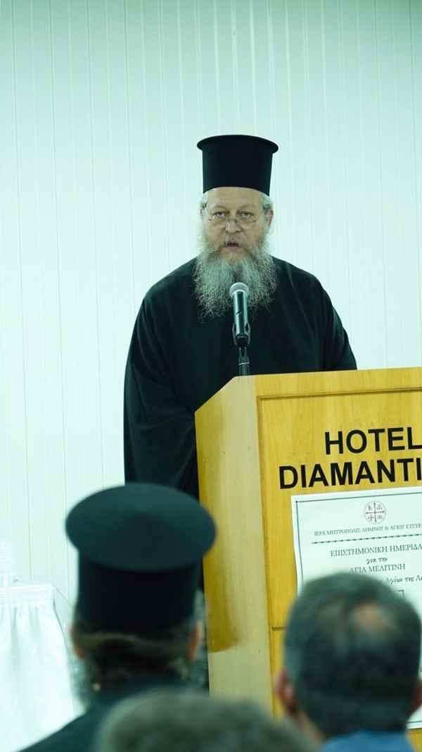 Η Ιερά Μητρόπολή μας διοργάνωσε με πολλή επιτυχία επιστημονική ημερίδα με σκοπό την ανάδειξη της Αγίας Μελιτινής, μιας εκ της χορείας των Αγίων της Λήμνου, το Σάββατο 25 Μαΐου, στον Συνεδριακό Χώρο του Ηotel Diamantidis. Η εκδήλωση εντάσσεται στο πλαίσιο της πρωτοβουλίας που ανέλαβε η Μητρόπολη για την προβολή των Αγίων της Λήμνου και του Αγίου Ευστρατίου, και ήταν η δεύτερη κατά σειρά μετά από την πρωτόγνωρη και επίσης επιτυχημένη εκδήλωση για τον Άγιο Γρηγόριο τον Παλαμά που έγινε πέρυσι. Στην επιστημονική ημερίδα έλαβαν μέρος τρεις έγκριτοι εισηγητές, οι οποίοι παρουσίασαν την προσωπικότητα της Αγίας Μελιτινής μέσα στο ιστορικό και πολιτισμικό πλαίσιο του 2ου μ.Χ. αιώνα κατά τον οποίο έζησε.