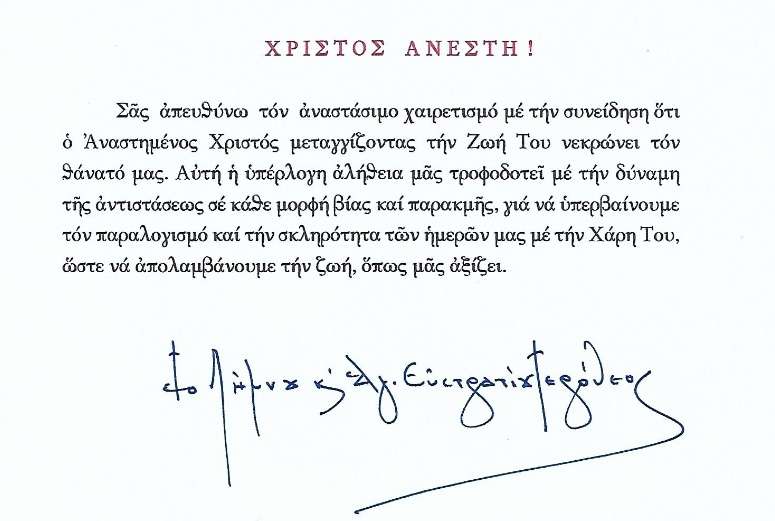 Οι Ευχές του Σεβασμιότατου Λήμνου και Αγίου Ευστρατίου κ.κ. Ιερόθεο για το Άγιο Πάσχα