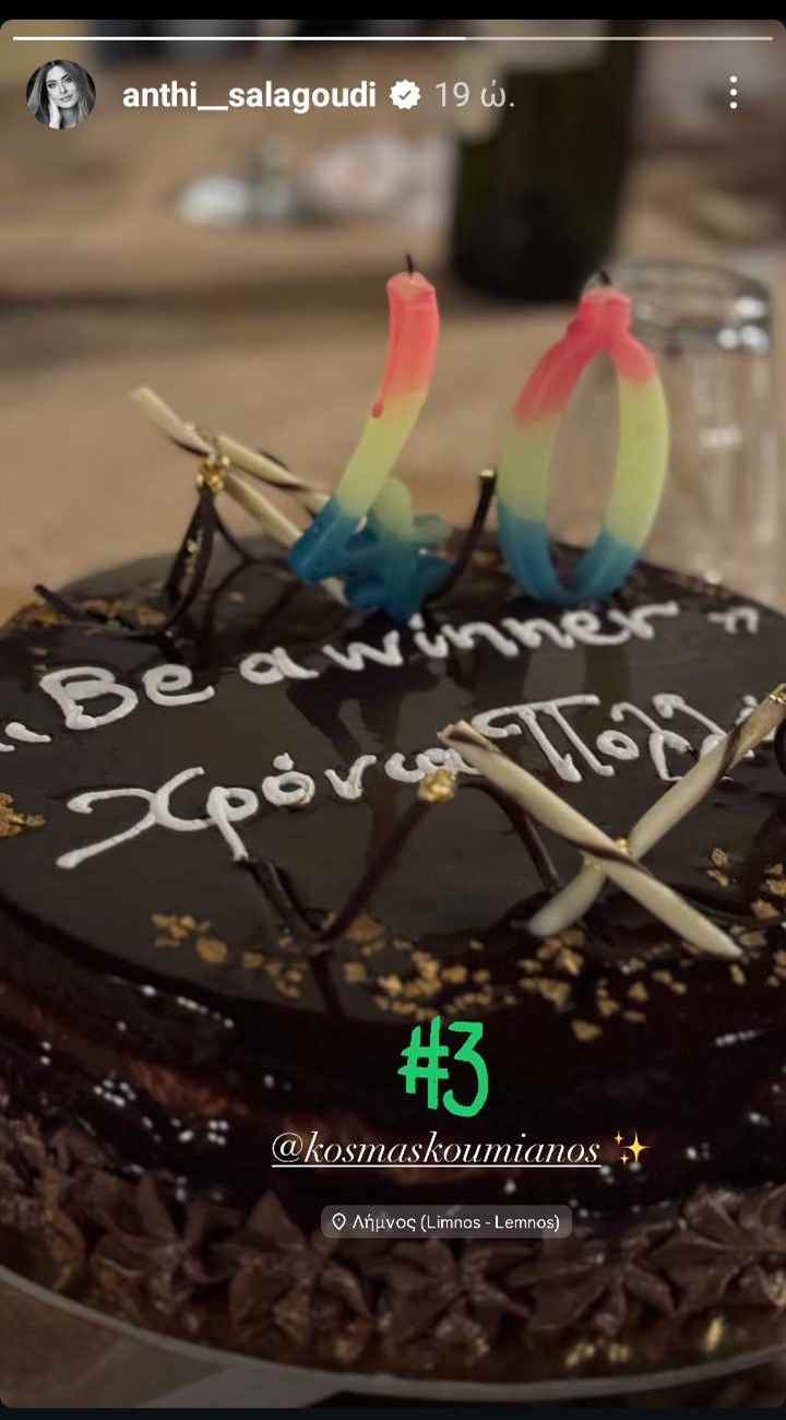 Για την ξεχωριστή αυτή περίσταση, μαζί με τη σύντροφό του απόλαυσαν και ένα ρομαντικό δείπνο δίπλα στις ψαρόβαρκες του παλιού γραφικού λιμανιού της Μύρινας, με τη σοκολατένια τούρτα να γράφει “Be a winner” Χρόνια Πολλά!