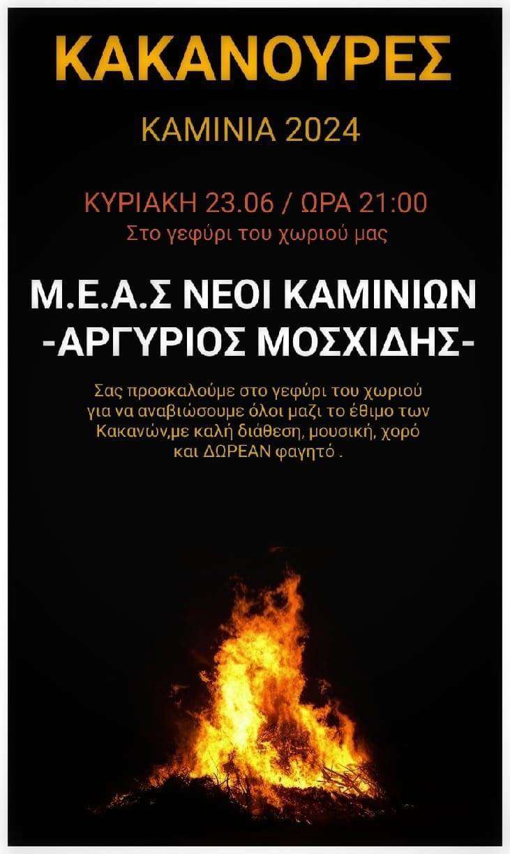 Την Κυριακή 23 Ιουνίου στις 21:00, προσκαλουν όλους τους τολμηρούς να συμμετάσχουν στο παραδοσιακό έθιμο της Λήμνου και σας περιμένουν στο γεφύρι του χωριού για να αναβιώσετε όλοι μαζί το έθιμο των Κακάνων, με καλή διάθεση, μουσική, χορό και δωρεάν φαγητό!