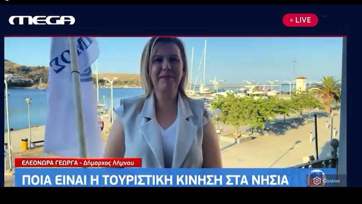 Στο MEGA Σαββατοκύριακο φιλοξενήθηκε σήμερα σε ζωντανή σύνδεση από το Δημαρχείο της Μύρινας η Δήμαρχος Λήμνου κ. Ελεονώρα Γεώργα για την τουριστική κίνηση του νησιού αναφερόμενη στα θετικά μηνύματα που υπάρχουν για την εξέλιξη της φετινής τουριστικής σεζόν στο νησί της Λήμνου