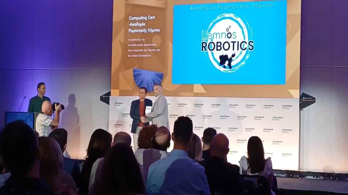Τον κέντρο μας έλαβε το χρυσό βραβείο στα Education Leaders Awards στην Κατηγορία Ψηφιακή Εκπαίδευση, Ρομποτική και ΑΙ για την Ανάπτυξη της εκπαιδευτικής ρομποτικής στην κοινωνία της Λήμνου και του Αγίου Ευστρατίου.
