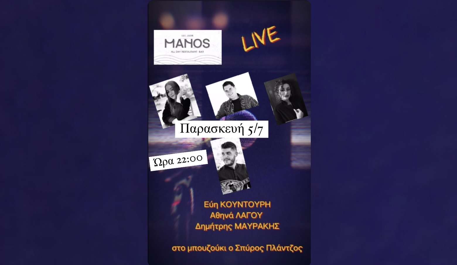 Παρασκευή 5/7 βράδυ Live στο ΜΑΝΟΣ